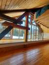 Les deux chambres sous les toits ambiance chalet avec fenêtre de toit style Vélux, et la cinquième chambre qui est une mezzanine .suspendu dans la charpente.